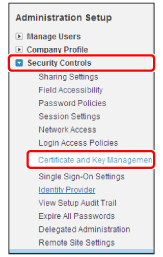 Select [Security Controls] in [Administration Setup ] → [Certificate and Key Management].