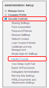 Select [Security Controls] in [Administration Setup ] → [Identity Provider].