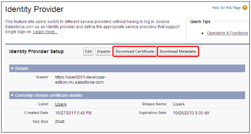 Click [Download Certificate] → save the certificate file → click [Download Metadata] → save the metadata.
