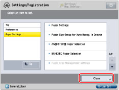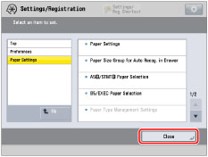 Specify the setting → press [Close].
