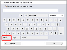 If you press [Shift] on the keyboard screen, the next entered character will be an uppercase letter. [Shift] is released everytime a character is entered, and the next entered characters will be lowercase letters.
