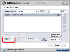 The forwarding settings are stored in memory if you press [OK] on the Register screen or the Edit screen.