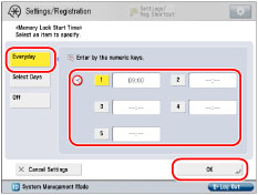 If you select [Everyday], select a number ([1] to [5]) → enter the start time using