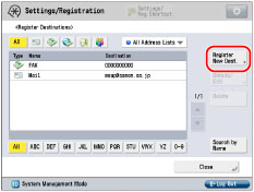 If you want to store a group address, the destinations must be stored beforehand, such as fax numbers, e-mail addresses, and file server addresses.