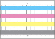 This mode enables you to correct uneven densities by viewing the output results of the test page and adjusting the density manually. Select this mode to correct uneven densities if the densitometer is unavailable or the densitometer correction is unsatisfactory. Note that sufficient experience in detecting slightly uneven densities is required to manually adjust the density.