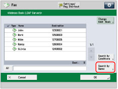 If the search result from [Search by Conditions is displayed on the search list screen, you cannot additionally press [Search by Name] to narrow the search by name.