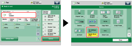Specify the destination → press [Options] → [Sender Name (TTI)].