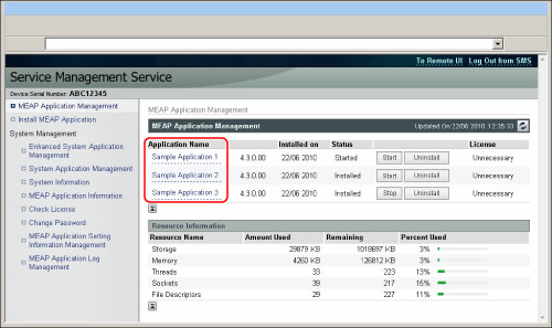 Click [MEAP Application Management].