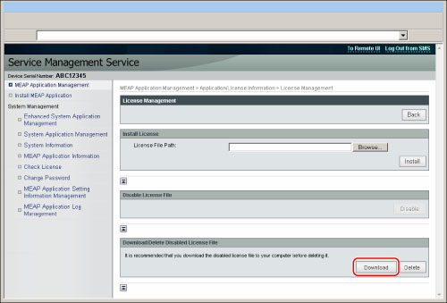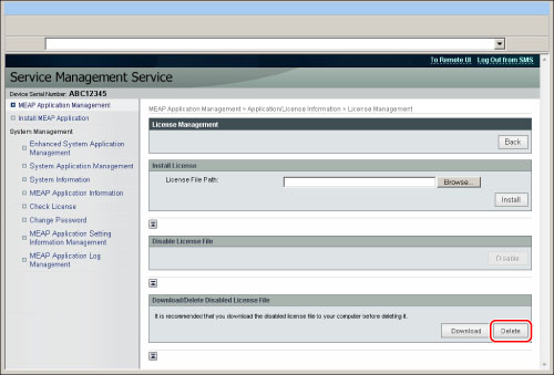 If you want to uninstall an application, you must first delete the license file. Also, if you want to back up before deleting, download and store the license file on your computer.