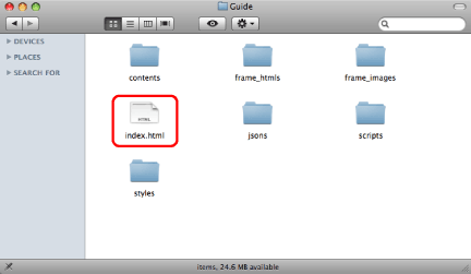In the installation folder, double-click [Documents] → [english] → [Guide] → "index.html" icon.