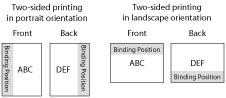 This parameter determines whether the binding position is along the long edge or the short edge of the paper. When binding for two-sided printing, the image orientation is automatically adjusted for correct layout.