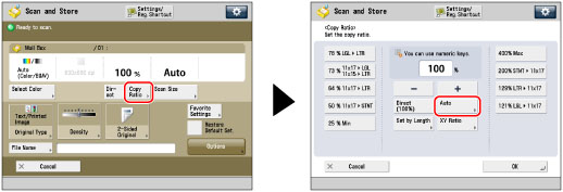 Press [Copy Ratio] → [Auto].