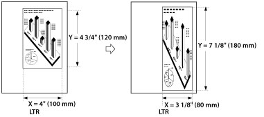 If you set the zoom ratio in the XY Ratio mode, the image of the original may be rotated before being printed. The machine calculates whether or not to do this based on the original size and the specified zoom ratio.
