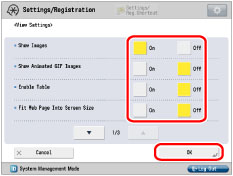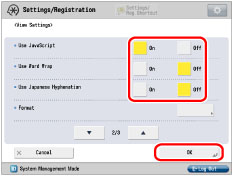If you want to specify the settings for [Show Images], [Show Animated GIF Images], [Enable Table], [Fit Web Page Into Screen Size], [Use JavaScript], [Use Word Wrap], [Use Japanese Hyphenation], and [Show Flash Contents]: