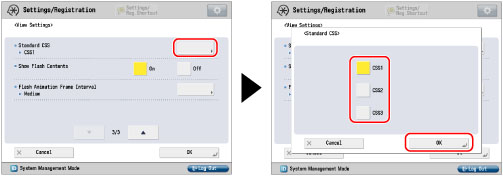 Press [Standard CSS] → select the type of Standard CSS → press [OK].