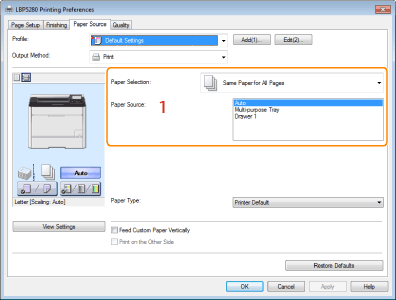 When you want to print on a specific type of paper, specify the paper source containing the paper, or the paper type.
