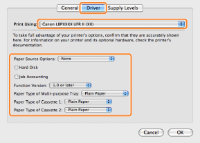 Be sure to select only those options that are actually installed in the printer.