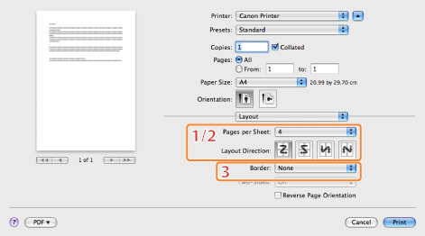 Prints multiple pages on one sheet of paper (see "Printing Multiple Pages on One Sheet").