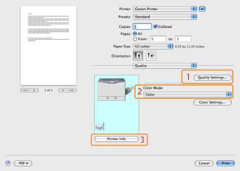 Prints color documents in black and white (see "Setting the Color Mode for Printing").