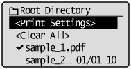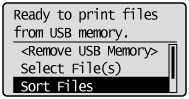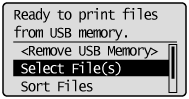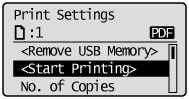 When the [Automatically Display USB Direct Print Screen] setting is checked on [USB Direct Print] in the [USB Direct Print Settings] on the Remote UI, the "USB Direct Print Mode Screen" is displayed automatically when a USB memory device is inserted.
