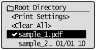 ] will be attached to the file name. If a file with [ ] attached is selected, and [OK] is pressed again, the selection is removed.If a folder is selected, and [OK] is pressed, the list of files inside the folder is displayed.