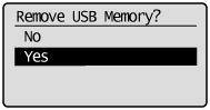 The following procedure is explained when the "USB Direct Print Mode Screen" is displayed. Remove the USB memory device using the same procedure even when the "Printer Setup Screen" is displayed.