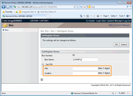 Enter the password that you want to specify in [PIN], and then enter the same number in [Confirm] as the one you entered in [PIN].