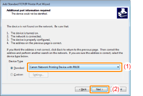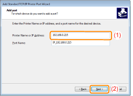 Enter the IP address or name* of the printer in [Printer Name or IP Address].