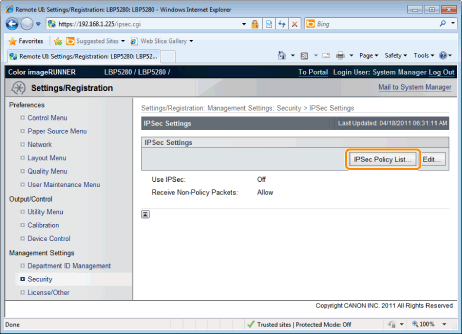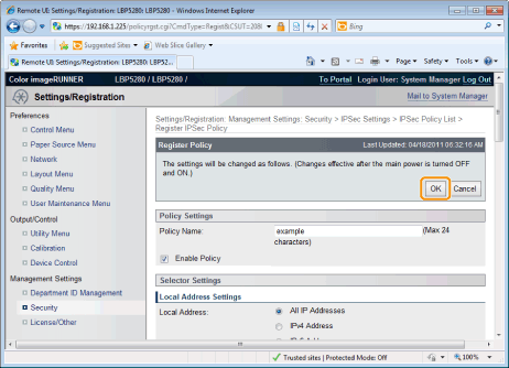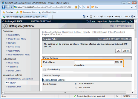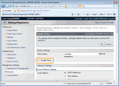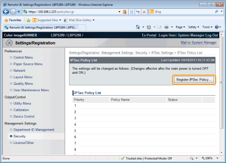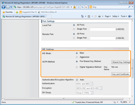 In order to set [Pre-Shared Key Method], the SSL encrypted communication function must be enabled.