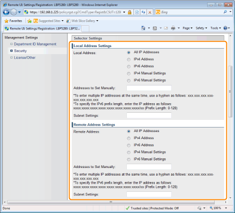 If you want to enter the IP addresses of consecutive numbers, place "-" (hyphen) between the address of the smallest number and that of the largest number.