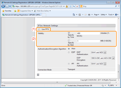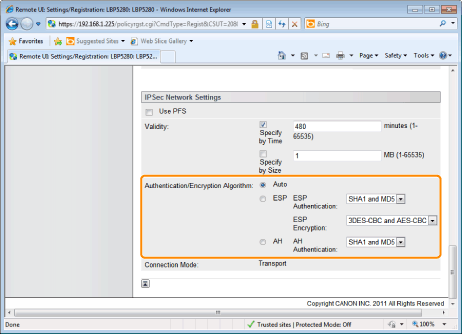 Select the encryption algorithm from [3DES-CBC], [AES-CBC] or [3DES-CBC and AES-CBC].