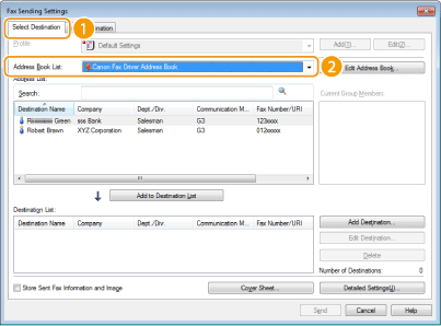 Click the [Select Destination] tab and select the Address Book from [Address Book List].