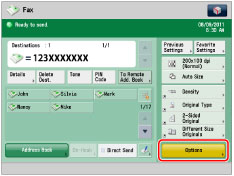 If [Fax] is set to 'On' in Limit New Destination, you cannot enter new destinations. In this case, select a stored destination by using the Local Address Book, the Remote Address Book, LDAP server, or One-touch Buttons. (See "Restricting Sending to New Addresses.")