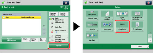 If you set PDF (Trace & Smooth), PDF (Compact), PDF (OCR), XPS (Compact), XPS (OCR), or OOXML as the file format, you can only send at a zoom ratio of [Direct (100%)] or [Auto].