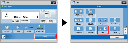 If you select [By Numeric Keys], the original image may be partially cut off on the copy. The amount cut off depends on the size of the original, the size of the copy paper, and the amount of shift specified.