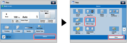 Press [Options] → [Mirror Image] → [Close].