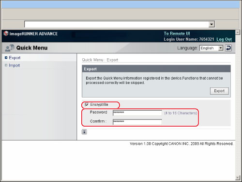 Only administrator can export/import the Quick Menu from a computer.