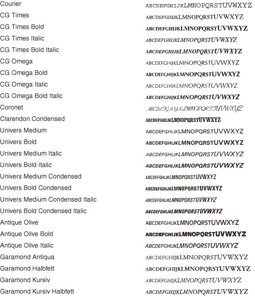 * The optional PCL International Font Set needs to be activated to use Andale Fonts (PCL).