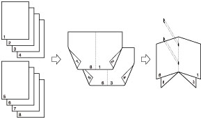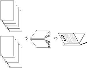 The maximum number of sheets that can be saddle stitched at one time is 16. If you want to saddle stitch 17 or more sheets, set the Divided Booklet mode.
