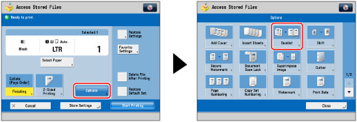 The Saddle Stitch and Divided Booklet modes can be set only if the Booklet Finisher-G1 is attached.