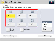 This mode is only available for printing files stored in the Advanced Box, the Advanced Box of another imageRUNNER ADVANCE machine on the network, or memory media.