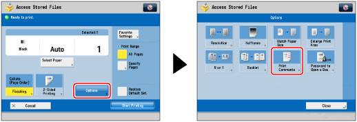 This mode is only available for printing files stored in the Advanced Box, the Advanced Box of another imageRUNNER ADVANCE machine on the network, or memory media.