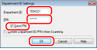 Select [Save PIN] → enter the department ID and PIN → click [OK].
