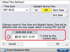 If you set Daylight Saving Time, the machine automatically sets the standard time of the machine one hour forward at the specified date and time.