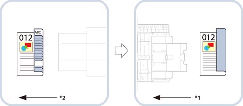 To copy or print on the backside of preprinted paper by using the multi-purpose tray, fix the curling and then load the preprinted paper with the printed side face up. If you want to perform 2-Sided printing, set paper as shown in the illustration below in order to print with the same orientation of the preprinted side.