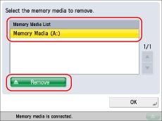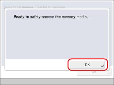Make sure you follow the following procedure to remove the memory media from the machine. If the memory media is removed from the machine in a way other than the procedure below, the memory media, the machine, and the Multimedia Reader/Writer-A2 may be damaged.