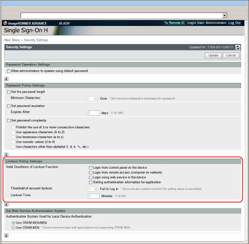 Specify the [Lockout Time] setting.
