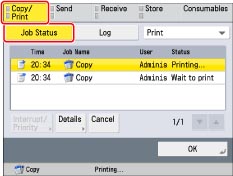 Displays detailed information for the selected job. Check the detailed information → press [OK] to return to the Copy/Print screen.