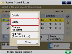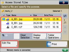 Press [Access Stored Files] → [Memory Media].