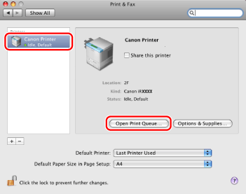 Select your printer → click [Open Print Queue] (or [Print Queue]).